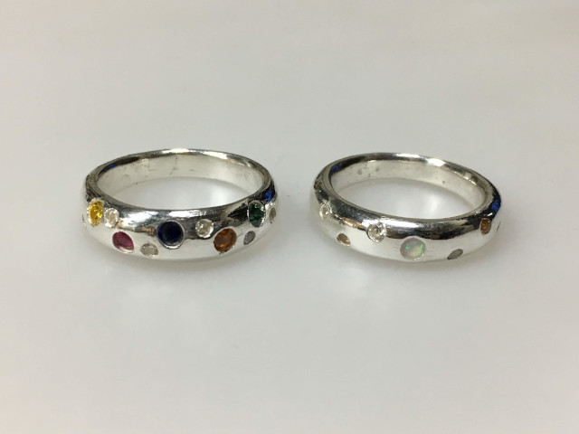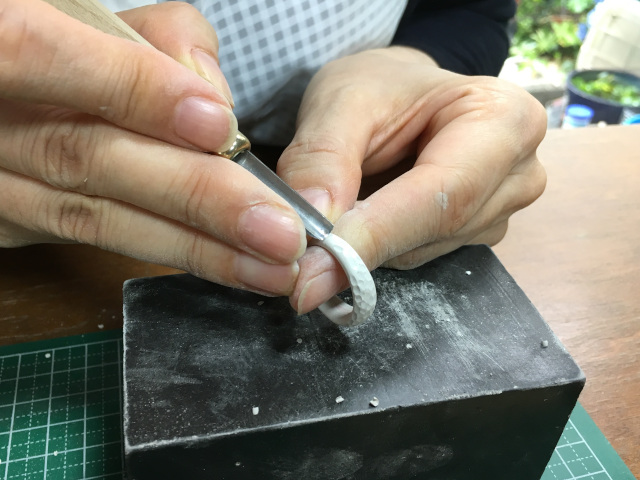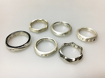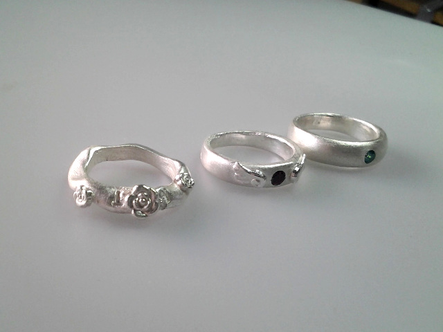 銀粘土で作るシルバーリング。シンプルなものからゴージャスなものまで、ジャストサイズで作れます。