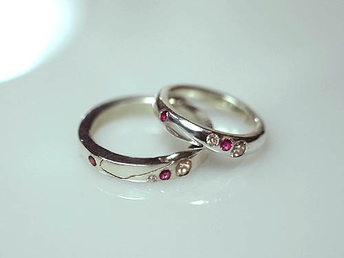 記念日や誕生日などに、ふたりで作るペアリング。シンプルなものから、二人だけの特別なデザインのものまで対応。お互いに作り合ったリングをはめる幸せ…いかが?