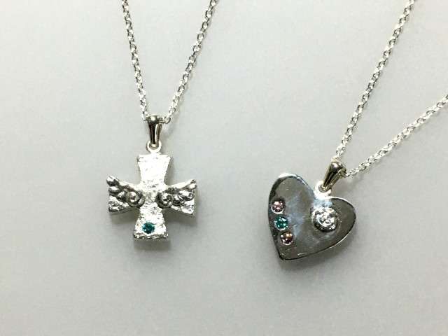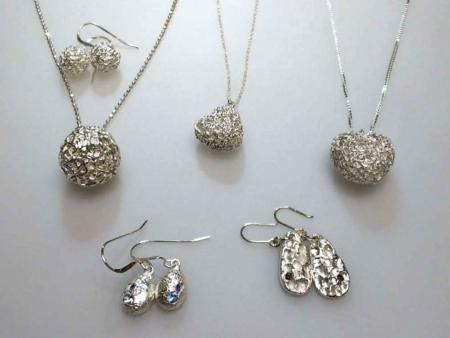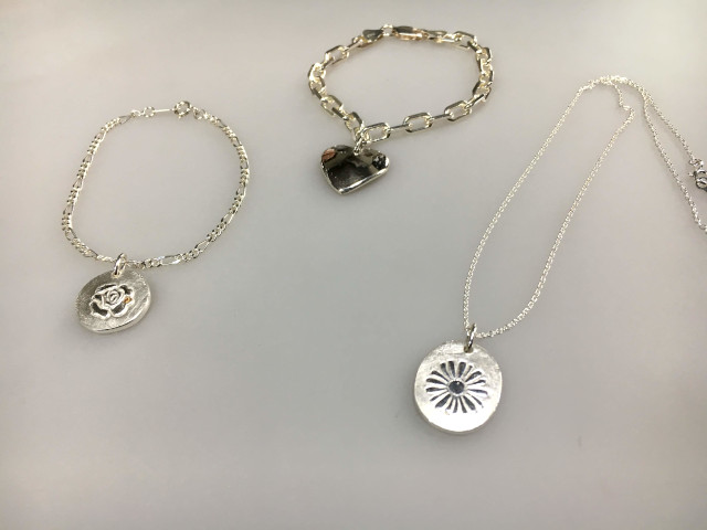 ペンダントトップやピアスなどの純銀アクセサリー。自分だけのデザインで作りたい方に。作るのが苦手な方には、型を使って簡単にキレイに作れるタイプもご用意。