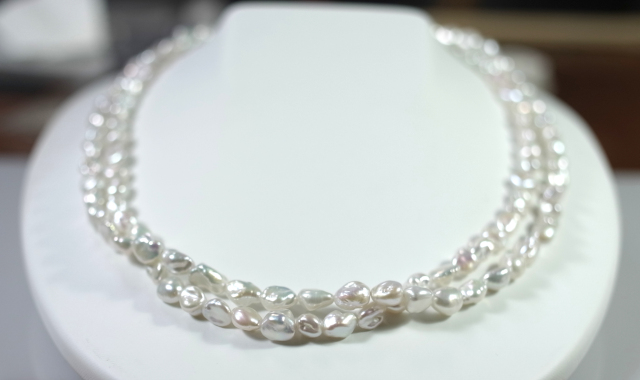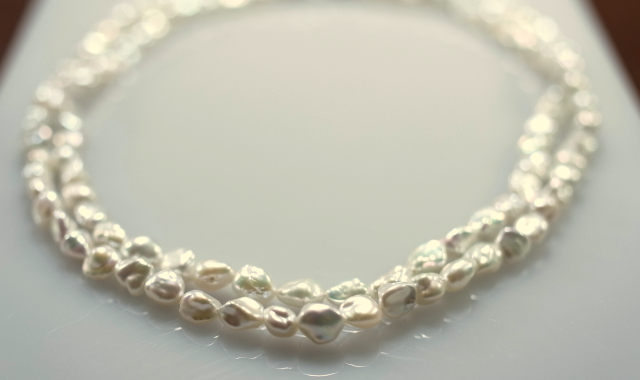 ネックレスの糸替えも承っています。珠と珠の間にすき間ができるようになったら、そろそろ糸替えのサインです。